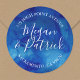 Etiquetas de endereço de retorno de casamento em círculo personalizado com um fundo de cor azul-abstrato para a água para coordenar com a nossa coleção de Ocultos de Sapphire. Personalize-o com seus nomes e endereço de retorno ou adicione seu próprio texto personalizado. Use as ferramentas de design para alterar as fontes e as cores ou carregar suas próprias fotos para criar uma única design.