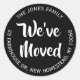 Adicione um toque elegante para trocar cartões de endereço, novos anúncios de endereço e outra correspondência com esses adesivos Nós movemos / movi-me. Todo texto pode ser personalizado. O design preto e branco apresenta a caligrafia do script de manuscrito na moda e o nome e endereço personalizados em um círculo. Essas etiquetas são uma maneira moderna de apresentar amigos e família à sua nova casa. Design simples e minimalista adiciona estilo sofisticado aos convites de festas de aquecimento doméstico, mudamos / movemos anúncios, cartões de natal para amigos e família, casamento, chá de panela ou graduação, obrigado notas, etc.