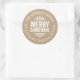 Barato impresso com etiquetas de endereço redondo impresso personalizadas com o nome da sua família e o endereço de retorno. Este design de feriado moderno rústico apresenta cartazes miseráveis MERRY CHRISTMAS em um fundo de papel kraft falso. Use as ferramentas de design para escolher qualquer cor de fundo e editar fontes e cores de texto para personalizar ainda mais seus rótulos exclusivos de endereço de retorno de feriado.