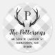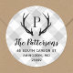 Etiquetas de endereço redondo personalizadas personalizadas com o monograma e o endereço da sua família. Esta design rusticidade moderna mostra seu monograma inicial com veados em uma cinza e um fundo de verificação de búfalos brancos. Use as ferramentas de design para alterar a cor e as fontes do plano de fundo para personalizar ainda mais seu próprio design único. Perfeito para dirigir cartões de natal, papelaria de casamento e muito mais.