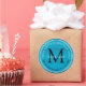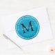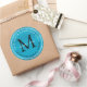 Adesivo Redondo Rótulo de endereço monograma em azul turquesa