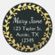 Adesivo Redondo Rótulo de endereço redondo preto e dourado