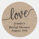Este rótulo de favor de festa de noiva simples e rústico apresenta a palavra amor em letra manuscrita. Adicione sua informação no modelo. Altere a fonte e o layout com a função Personalizar Mais.
