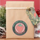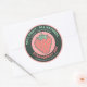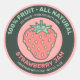 Ilustração de um morango. Cor de fundo personalizada. Quatro campos de texto a serem personalizados.