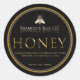 Adesivo Redondo Rótulo de Mel Preto: Abelhas Douradas Metálicas