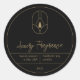 Design moderno em cor preta e inspirada em ouro para etiquetas personalizadas de produtos. Selecione o botão ''Editar usando a Ferramenta de Design'' para personalizar o design. *Se você escolher um adesivo redondo menor, verifique se o tamanho da fonte ou o posicionamento dos elementos estão corretos. *recomendado para editar usando o computador