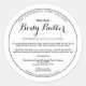 Esta etiqueta de cosméticos apresenta espaço para o seu nome comercial, Web site, nome do produto, odor, ingredientes, instruções de utilização e informações de contato da empresa. Este rótulo mede 3 polegadas (25,4 mm) de diâmetro e é adequado para frascos de perfil baixo com tampas de pelo menos 3 polegadas (25,4 mm) de diâmetro. Este rótulo faz uma escolha de excelente para embalar produtos de beleza em frascos que exigem grandes rótulos circulares como esfregões de açúcar, manteiga de corpo, loções e cremes grossos.