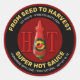 Letras HOT com o O feito com uma garrafa de molho de pimenta. Cor de fundo personalizada. Quatro campos de texto a serem personalizados.