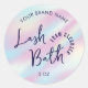 Rótulo holográfico de banheira de design com texto totalmente editável e fonte de estilo manuscrita. Marca os frascos de xampu com este adesivo redondo cinzento rosa e azul.