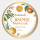 Etiqueta desenhada de forma elegante com ilustrações e flores cor de laranja antigos e ORANGE MARMALADE gravada numa fonte metálica decorativa de laranja-ouro. Borda de gradiente de ouro metálico. Pode substituir a palavra "Homemade" por "Farmhouse" ou "Sweet/Bitter", etc.