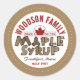 Este rótulo não é para a fraqueza do coração. Negrito, escuro e rústico, ele desenhar a imagem de um pote quente de seiva sendo fervida em um velho fogão de madeira em um galpão. O emblema da folha vermelha mostra a nota enquanto o xarope de bordo é escrito em uma fonte decorativa rústica que se parece com conselhos antigos unidos. Edite este rótulo de xarope de mapa em negrito adicionando seu nome comercial, endereço, volume de xarope de maple e nível.