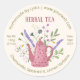 Adicione um toque de charme à sua embalagem de chá de ervas caseiras com este belo design de etiqueta redonda com um bule rosa vintage cercado por ervas florescentes e flores silvestres. Perfeito para pequenas empresas, presentes feitos à mão ou mercados de fazendeiros, este adesivo personalizável inclui espaço para seu nome, site, data, ingredientes e peso líquido em gramas e onças. Ideal para misturas de plantas como camomila, hortelã e limão-verbena.