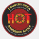 Quente com a letra O feita de um círculo de chama com pimentões picantes. Cor de fundo personalizada. Quatro campos de texto a serem personalizados.