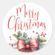 Adesivo Redondo Rótulo Moderno de Feliz Natal com Laço Vermelho