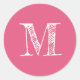 Adesivo Redondo Rótulo Rosa Quente Inicial do Monograma de Script