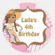 Adesivo Redondo Rótulos de Festa de aniversário de Cowgirl Afro-Am