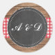 Adesivo Redondo Rótulos de giz russo e de madeira vermelha