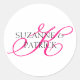 Adesivo Redondo Rótulos do Monograma do Script K (Rosa Quente / Pr