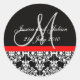 Adesivo Redondo Rótulos Monogramas - Damask Trellis - Preto/Vermel
