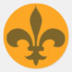 Os autocolantes redondos na sua escolha de dois tamanhos, com uma grande flur de lis design. Este é um ouro profundo, e adicionamos um fundo laranja, mas você pode facilmente mudar isso para qualquer cor que quiser. O fleur-de-lis é um lírio estilizado (em francês, flúor significa flor, e lis significa lírio) ou íris usada como design ou símbolo decorativo. É um símbolo de todas as coisas que França, Quebec, Nova Orleans e muitos outros lugares.