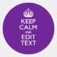 Adesivo Redondo Roxo Fique Calmo E Seu Texto Facilmente