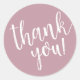 Adesivo Redondo Roxo Script Escrito à Mão Obrigada