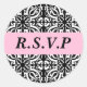 Adesivo Redondo RSVP - Personalizável (Damasco Preto e Branco)
