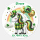 Uma bonito e bonita imagem de um pequeno unicórnio com shamrocks e um fundo arco-íris, é apresentada neste clássico adesivo redondo para Ruas. Dia do Pat. Com a mensagem "Feliz Rua.Dia de Pat", você pode usar este adesivo para aqueles envios especiais, decoração, raspagem e muito mais!