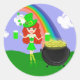 Adesivo Redondo Rua Pat's Day Redhead Girl Leprechaun com Rainbow