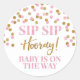 O bebê Sip Sip Hooray está no caminho do adesivo de etiqueta favorita do chá de fraldas com o padrão de confete rosa e dourado. Perfeito para um chá de fraldas decorar champanhe ou garrafas de vinho.