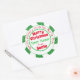 Estas etiquetas de presentes de autocolante festivas e personalizadas do Natal apresentam uma estrutura externa com um design de menta verde-brilhante suja. A frase "Entrega especial do Polo Norte" é impressa em um padrão circular ao redor da área de texto. A saudação "Feliz Natal" é impressa no topo do autocolante com uma letra vermelha e timítica. Um nome de exemplo é impresso abaixo dele em verde, que você pode personalizar para incluir seu próprio nome personalizado ou destinatário. "De Papais noeis" é impresso na parte inferior.