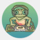 Adesivo Redondo Rua Retro Sapo com Fones de ouvido | Engraçado