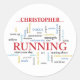 A palavra Running está no cerne de muitas palavras que refletem a alegria, o compromisso e o esporte de correr. Cores e fontes diferentes disparam as várias palavras. O corredor vai gostar de ler os muitos aspectos da corrida de que desfrutam.
