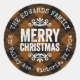 Barato impresso com etiquetas de endereço redondo impresso personalizadas com o nome da sua família e o endereço de retorno. Este design de feriado moderno rústico mostra cartazes NATAL MERRY aflitos em um fundo de xadrez de verificação de búfalos preto e castanho. Use as ferramentas de design para escolher qualquer cor de fundo e editar fontes e cores de texto para personalizar ainda mais seus rótulos exclusivos de endereço de retorno de feriado.