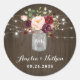Adesivo Redondo Rustic Burgundy Blush Floral Mason Jar Wedding