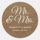Adesivo Redondo Rustic Burlap Sr e Sra. Wedding