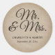Adesivo Redondo Rustic Burlap Sr e Sra. Wedding