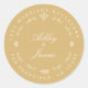 Chic, moderno e simples retorno de casamento difundem um adesivo redondo clássico com o texto do futuro Sr. e Sra. em um roteiro elegante branco em um fundo amarelo dourado brilhante embelezado com louros e outros detalhes decorativos rústicos. Basta adicionar seu nome e endereço. Desenvolvido exclusivamente para você pelo Happy Dolphin Studio. Se precisar de ajuda ou produtos correspondentes, entre em contato conosco em happydolphinstudio@outlook.com. Estamos felizes em ajudá-lo a fazer seu casamento o dia mais bonito!