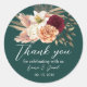 Obrigado redondo, você cola com flores românticas de bolos em burgundy, marfim e pêssego sobre um fundo verde esmeralda profundo. Perfeito por selar bolsas ou cartas de agradecimento na sua recepção de casamento. Parte da suíte Rustic Emerald & Burgundy Floral. Para obter ajuda: bpkolman@gmail.com