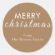 Rustic "Feliz Natal" nome da família de guião Classic Round Sticker - Brown.