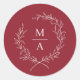 Adesivo Redondo Rustic Red Simple Elegante Laurel Wreath Monograma