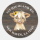 Adesivo Redondo Rustic Sunflower Highland Cow Chá de fraldas Addre