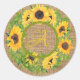 Adesivo Redondo Rústico Girassol Monograma Burlap