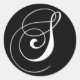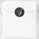 S monograma com fundo preto, script branco inicial e borda prateada. Um adesivo perfeito para os envelopes de casamento, sacos de presentes ou outra decoração para o seu casamento elegante.