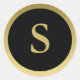 Adesivo Redondo S: Monograma S Elegante Dourado e Preto