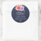 Um adesivo de odor de velas/sabão com um buquê agradável de rosas de aquarelas com galhos, folhas e galhos, todos juntos num arranjo floral colorido. fundo azul marinho.