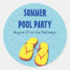 Adicione diversão extra à sua festa de verão com este adesivo de excelente! Um par de chinelos amarelos se senta no fundo de um stucco de cor ciana que imita uma superfície de concreto de piscina. Sua mensagem personalizada de festas fica acima. Um adesivo de excelente para uso em bolsas favoráveis ou para selar convites. Disponível com produtos correspondentes.