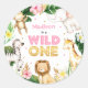 Adesivo Redondo Safari Animais Selvagens de Um primeiro aniversari
