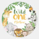 Adesivo Redondo Safari Animais Selvagens Um primeiro aniversario D