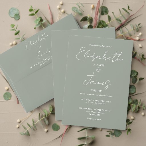 Simple Sage Green Script Wedding Invitation SuiteCriado por Pure Piglet Designs